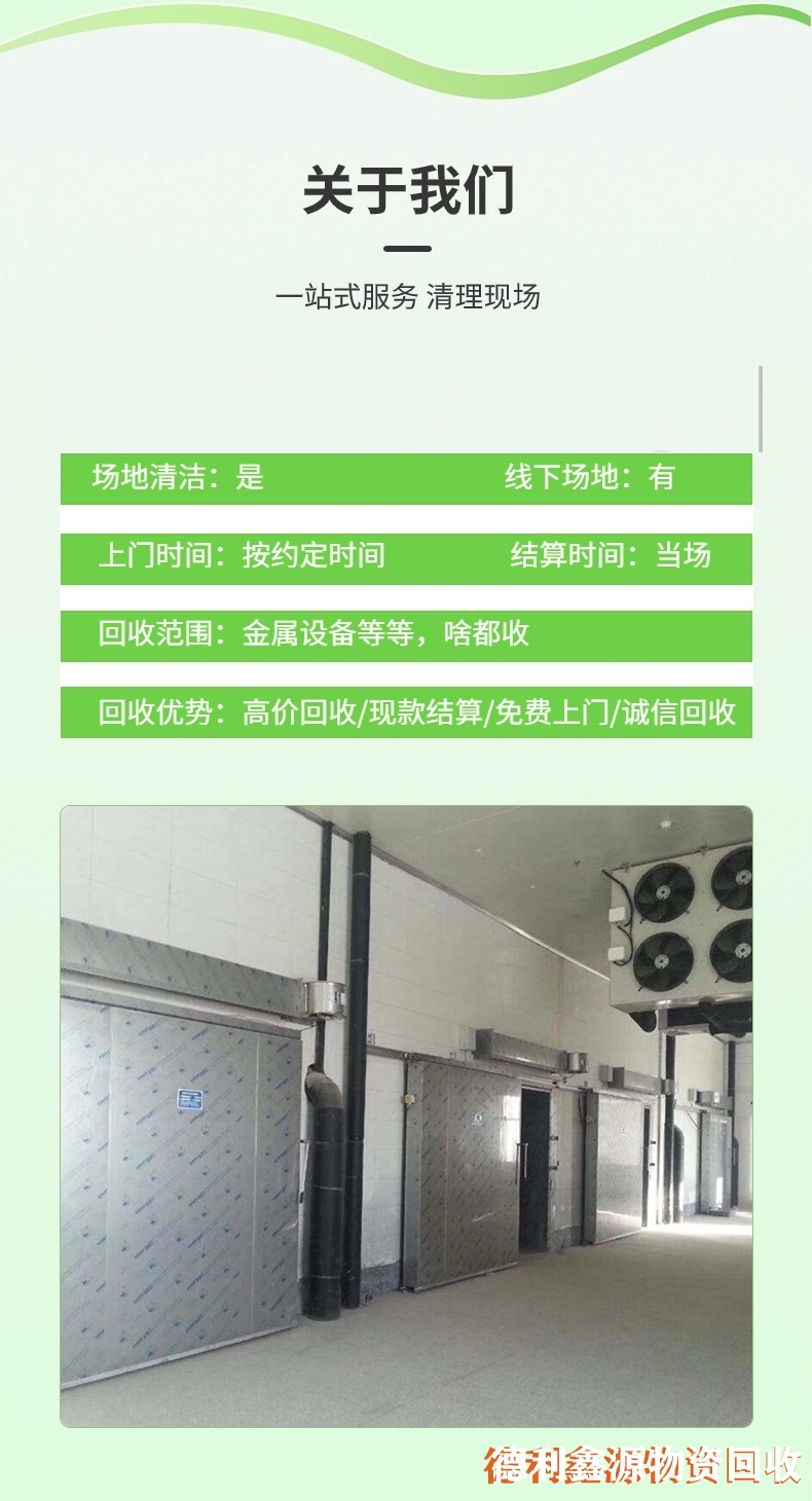 長(zhǎng)期高價(jià)回收二手冷庫(kù)及中央空調(diào)制冷設(shè)備,主營(yíng)冷庫(kù)設(shè)備安裝設(shè)計(jì),資金充足,快速上門(mén)。提供回收、拆除、銷(xiāo)售、安裝等一站式服務(wù),以質(zhì)論價(jià),互利共贏。